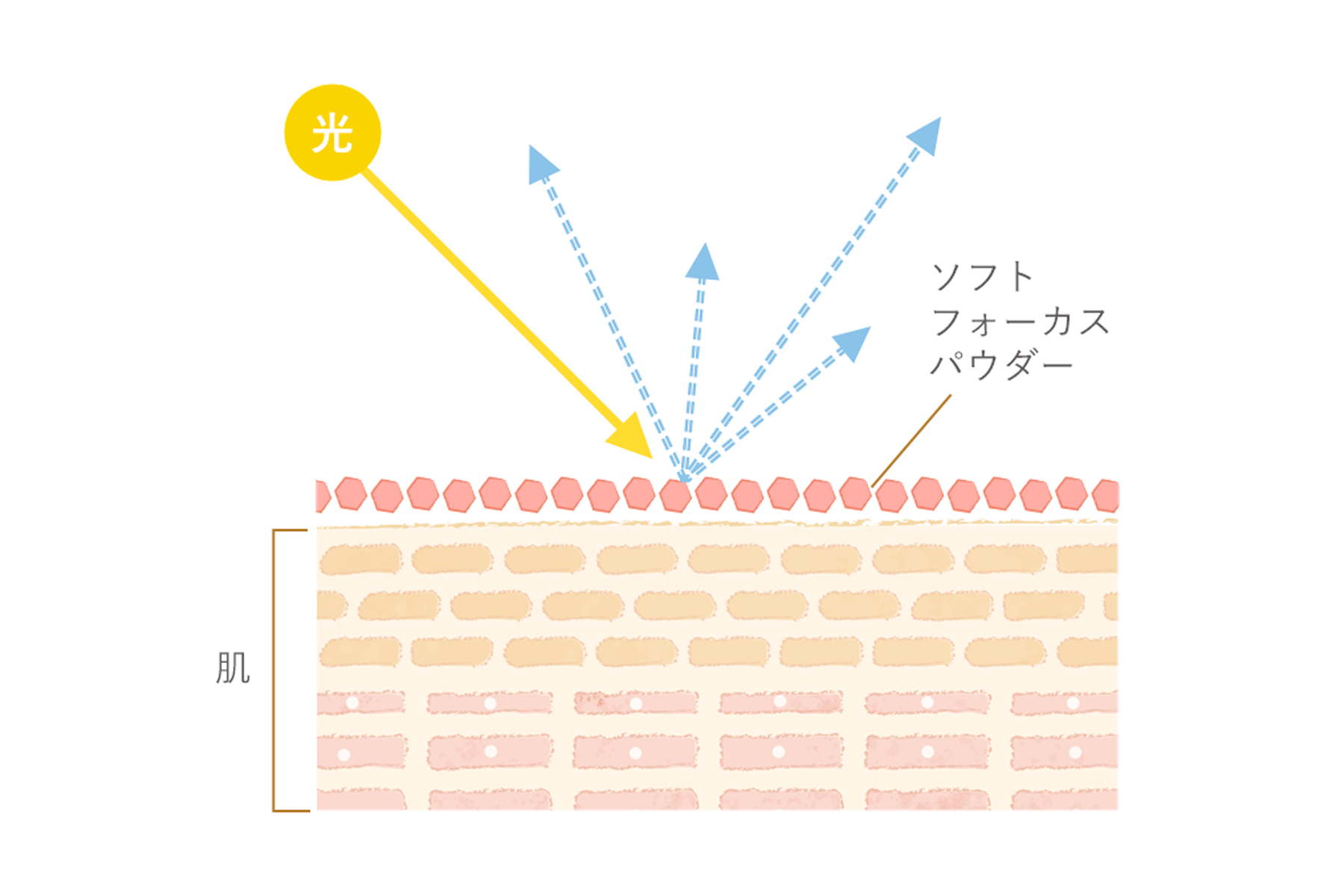 ソフトフォーカス効果を持つサステナブルな粉体*4を新配合。ソフトフォーカス効果により光を使用してカバーすることで、厚ぬり感なくなめらかな印象の肌に仕上げます*1。光を乱反射させることで、肌のキメや毛穴をぼかしてまるでフィルターをかけたような仕上がりに。