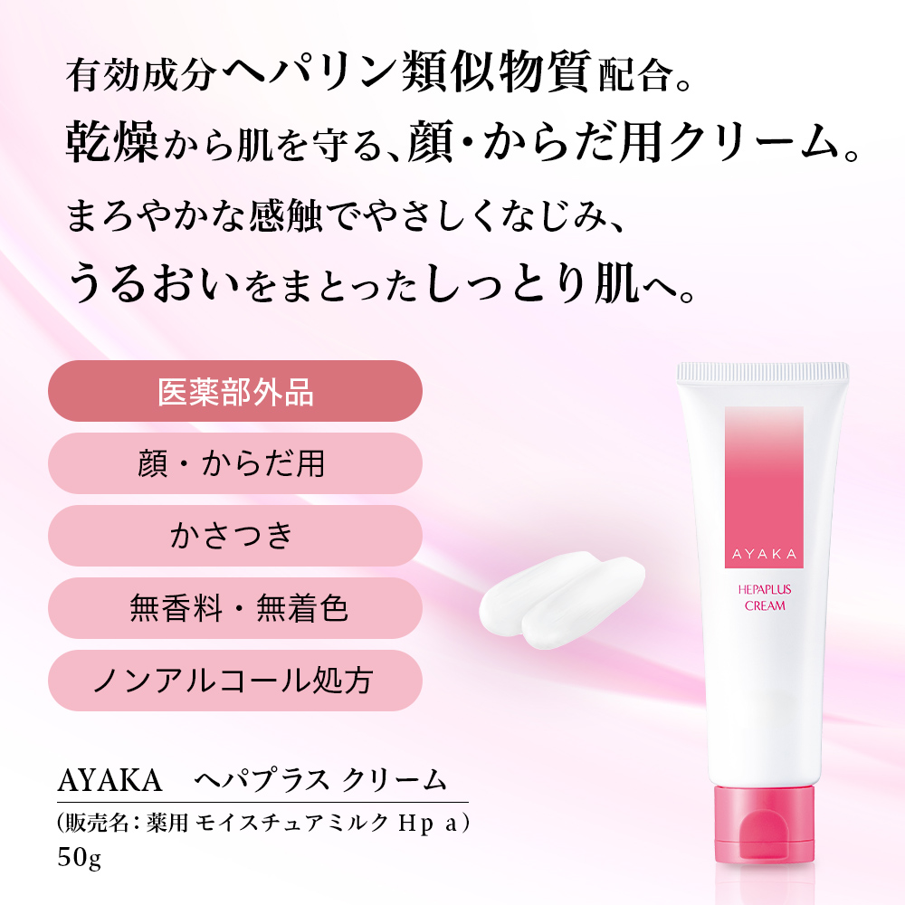 - 有効成分ヘパリン類似物質配合。乾燥から肌を守る、顔・からだ用クリーム。まろやかな感触でやさしくなじみ、うるおいをまとったしっとり肌へ。
