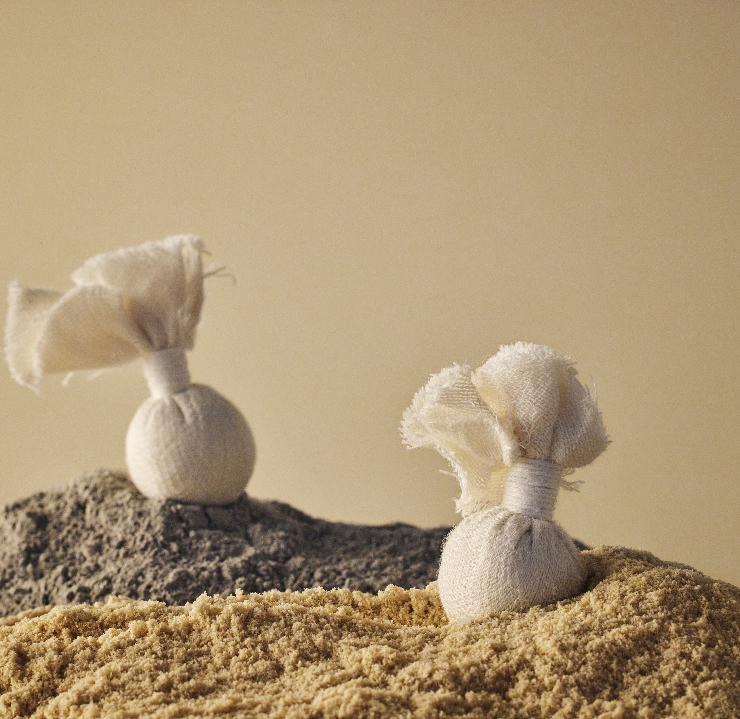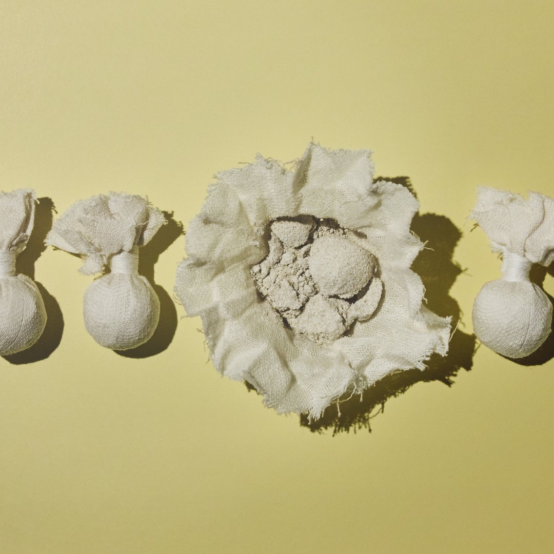 • 国産有機米ぬかパウダー*1とクレイパウダー*2をブレンドし、肌あたりのやさしいオーガニックコットンガーゼで包みました。
