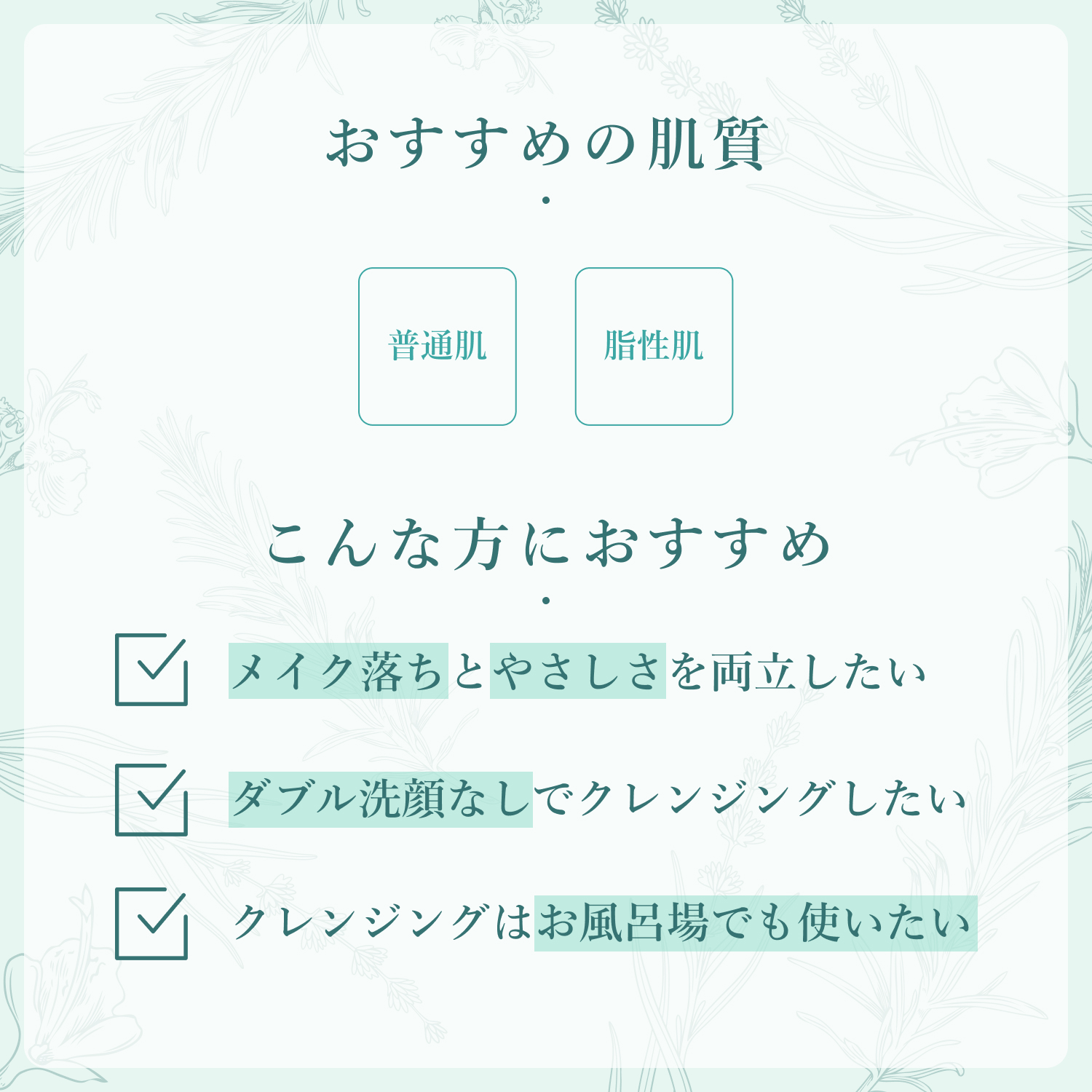 - ヌルつきなく素早く洗い流し、肌のうるおいはキープ。