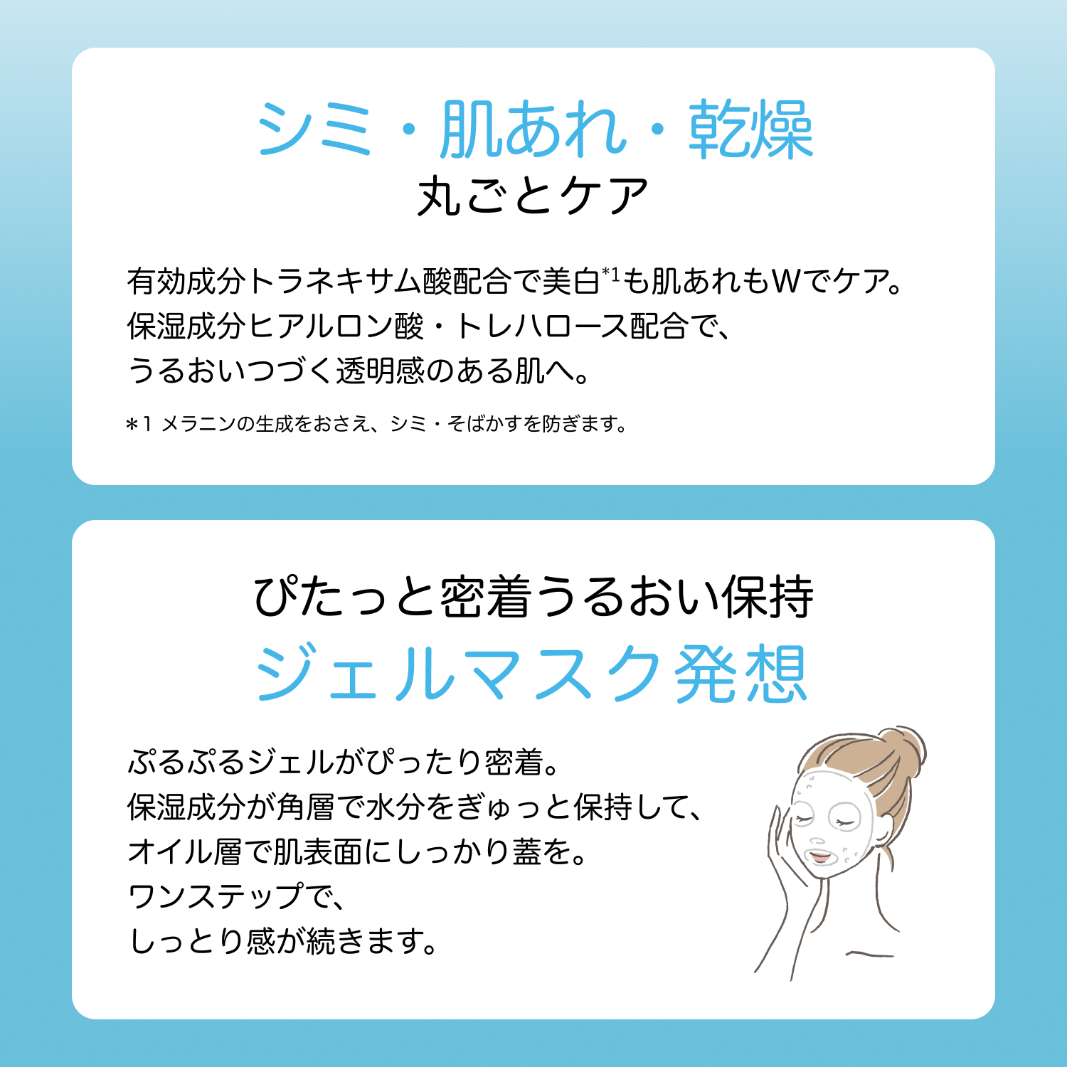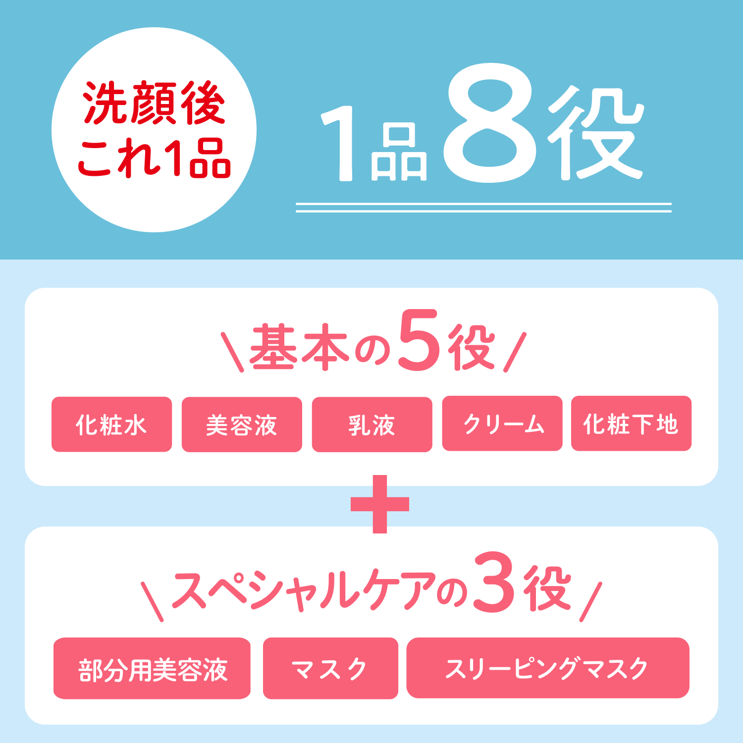 - 【1品で8つの役割】化粧水・美容液・乳液・クリーム・化粧下地の基本5役と、部分用美容液・マスク・スリーピングマスクのスペシャルケア3役を兼ね備えた薬用美白オールインワンジェルです。